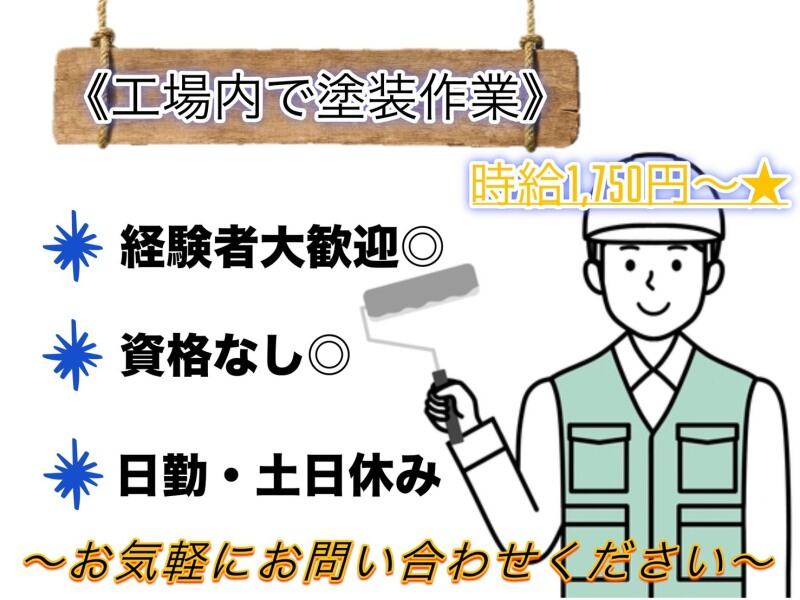NEW動画あり高収入給与UP野々山人材サービス株式会社 野々山人材サービス株式会社001(SF)【工場内で塗装作業】最高時給2,188円|入社祝い金あり|土日休bg_027a派遣時給1,750円~2,188円bg_006b| 勤務 |半田市 / 亀崎駅 (車 5分)bg_008b派遣工場・製造その他、製造スタッフ(組立・加工等)、軽作業・物流その他bg_012b派遣08:30~17:00もっと見るtoggle_002a応募する電話する