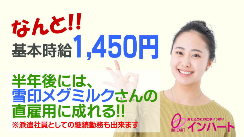 動画あり高収入給与UP株式会社 インハート★高時給1450円(深夜帯時給1813円) ★製造職 ★雪印メグミルクbg_027a紹介予定派遣時給1,450円bg_006b| 勤務 |稲敷郡阿見町 / 荒川沖駅 (車 15分)bg_008b紹介予定派遣食品・飲料系製造、ライン作業、仕分け・シール貼りbg_012b紹介予定派遣06:00~15:00、08:00~17:00、11:00~20:00もっと見るtoggle_002a応募する電話する
