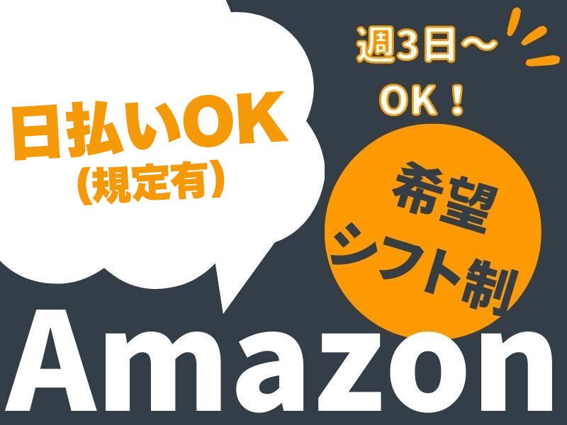 WEB選考完結OK動画あり京田辺Amazon 採用受付選べる日勤/夜勤■週2~◎Amazonで仕分けやシール貼り☆日払いbg_027a派遣時給1,250円~1,563円bg_006b| 勤務 |京田辺市 / 松井山手駅bg_008b派遣仕分け・シール貼り、梱包、検品bg_012b派遣09:00~18:00、20:00~05:00シフト相談週2・3〜OK週4〜OKもっと見るtoggle_002a応募する電話する