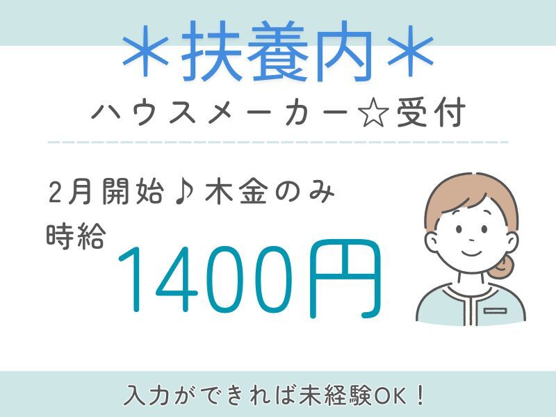 動画あり株式会社トライフィット 採用窓口岐阜【002】未経験OK!木金のみ♪2月開始◎大手ハウスメーカーで受付bg_027a派遣時給1,400円~bg_006b| 勤務 |岐阜市 / 西岐阜駅 (車 5分)bg_008b派遣受付、案内(インフォメーション/レセプション)・フロント、データ入力、タイピング(PC・パソコン・インターネット)bg_012b派遣09:00~18:00週2・3〜OKもっと見るtoggle_002a応募する電話する