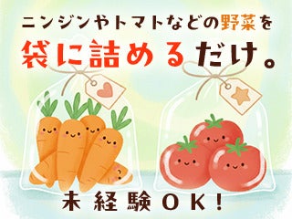 WEB選考完結OK動画ありテイケイトレード株式会社 横浜支店≪シニアの方も活躍中≫物流センター内で野菜の袋詰め!bg_027a派遣時給1,344円~1,680円bg_006b| 勤務 |川崎市川崎区 / 川崎駅bg_008b派遣仕分け・シール貼り、梱包、検品bg_012b派遣08:30~16:30シフト相談週1〜OK週2・3〜OK週4〜OKもっと見るtoggle_002a応募する電話する